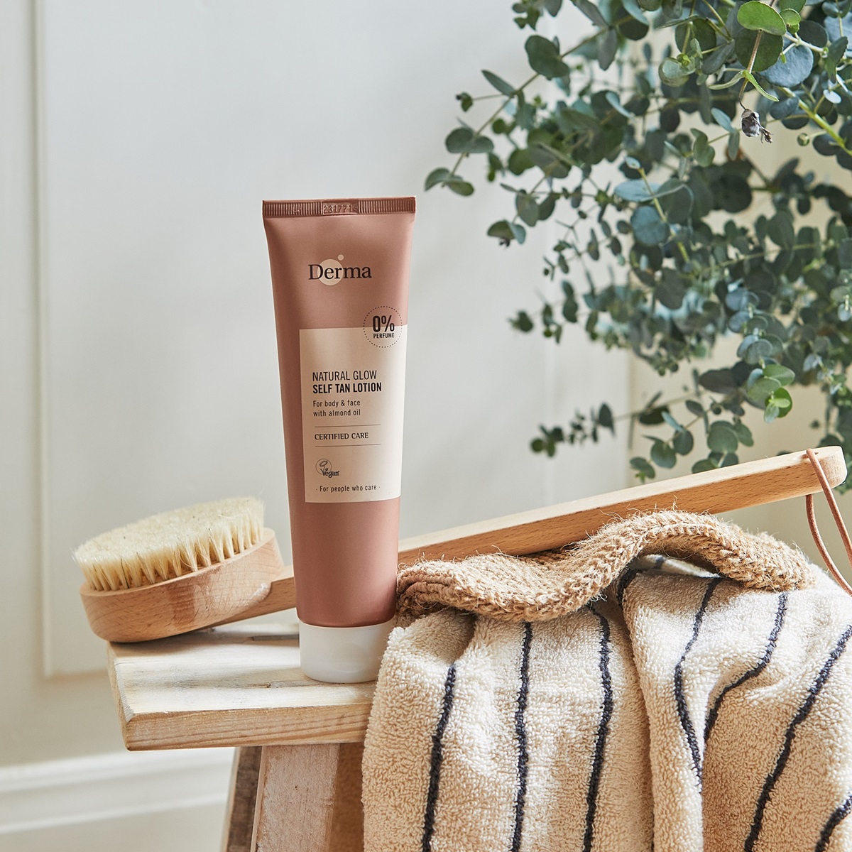 Dermas selvbrunere er vegansk certificeret, uden parfume og i emballage primært lavet af genbrugsplast. Alle produkterne er udviklet og produceret i Danmark.